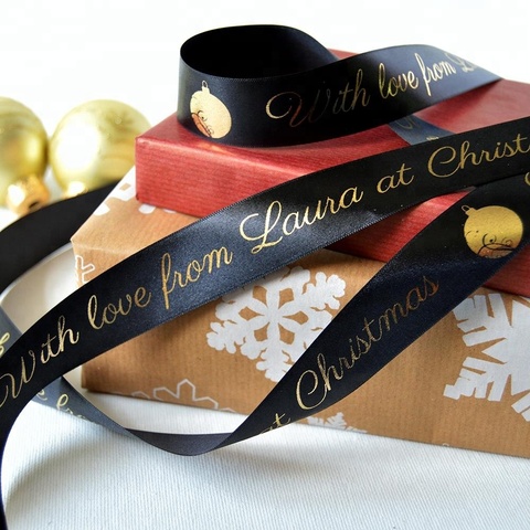グリッターゴールドロゴグロスグレインリボンカスタム多色高品質グログレインギフトリボンロールフェスティバル用